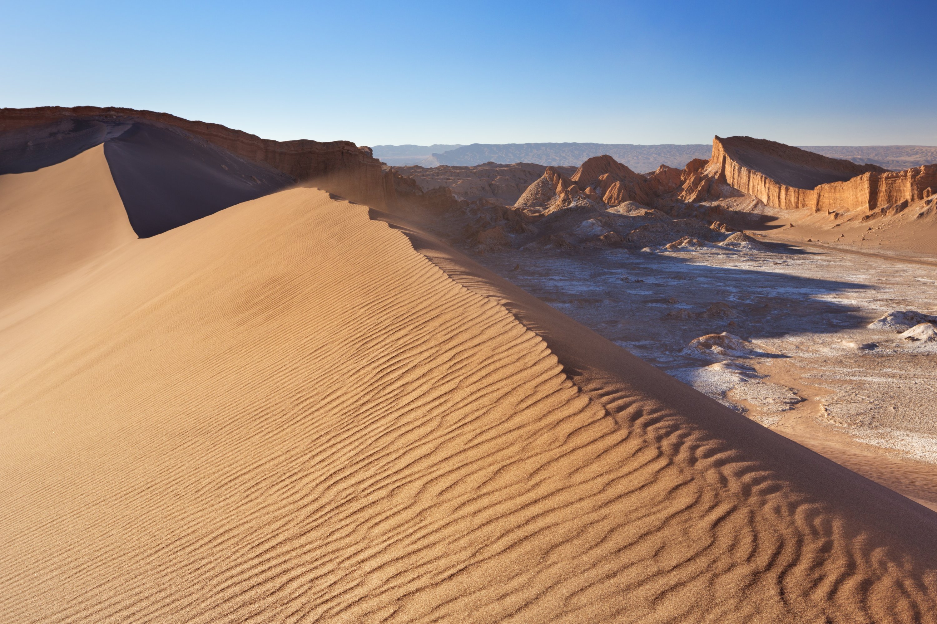 Hlavním lákadlem Valle de la Luna jsou neuvěřitelné geologické formace, které vznikaly po miliony let působením větru, soli a extrémních teplotních rozdílů. Ostré hřebeny, zvlněné duny a skalní útvary připomínající hřbety draků nebo zkamenělé vlny působí téměř nadpozemsky. Mezi nejznámější místa patří „Las Tres Marías“, tři kamenné sloupy tyčící se nad okolní krajinou, a impozantní Duna Mayor, odkud se otevírají fantastické výhledy do širého okolí.