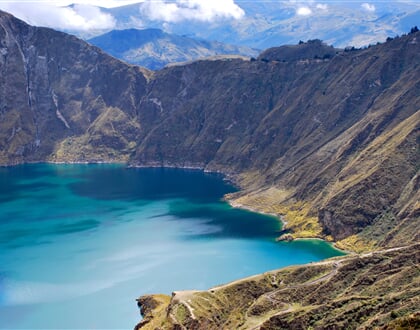 V centrálním Ekvádoru, asi 170 kilometrů jižně od Quito, se ukrývá jedno z nejpůsobivějších přírodních míst celé země – Laguna Quilotoa. Toto kráterové jezero vzniklo v kaldeře dávné sopky a jeho intenzivně tyrkysová voda vytváří dramatický kontrast s tmavými svahy andských hor.