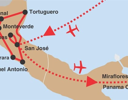 Dvě nejrozvinutější země Střední Ameriky oplývají množstvím přírodních atrakcí. Na tomto poznávacích zájezdu Vám nabídneme to nejlepší z obou zemí. Obdivujte přírodu nejen pohledem vleže na pláži, ale také nad pralesem ze závěsných lávek v Monteverde. Zažijete osvěžující koupel v termálech pod Arenalem a odpočinete si na plážích v Manuel Antonio. Návštěva Kostariky by nebyla kompletní bez NP Tortuguero. Vaši cestu završí plavba Panamským průplavem a prohlídka Panama City.