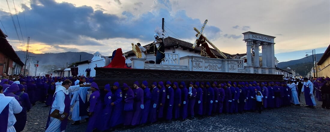 Antigua Guatemala je domovem největší velikonoční oslavy ve světě, kdy se slaví umučení, ukřížování a zmrtvýchstání Ježíše Krista. Průvod má kořeny v andaluské tradici a byl do Guatemaly přivezen misionáři v 16. století. Do oslav je zapojené celé město včetně tisíců přihlížejících turistů a samotné přípravy na tyto slavnosti probíhají již dlouhé týdny před Velikonocemi.