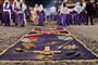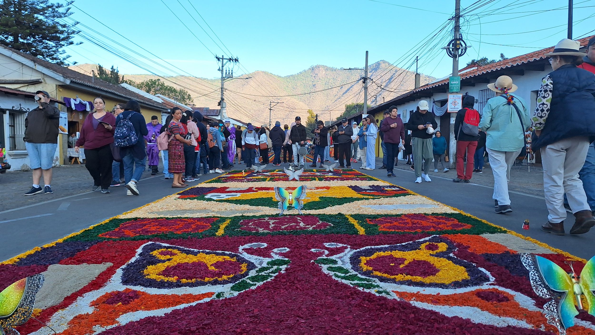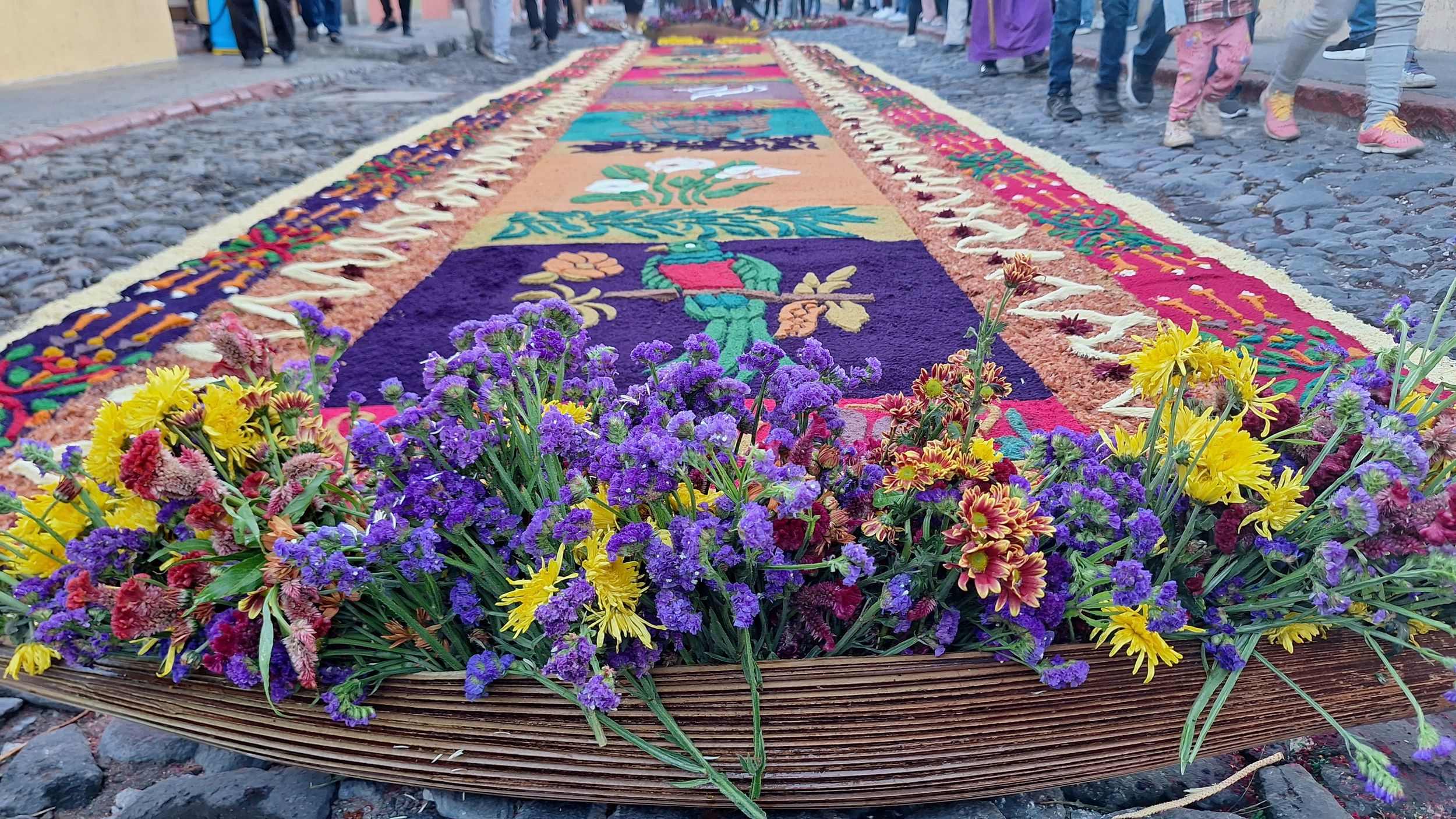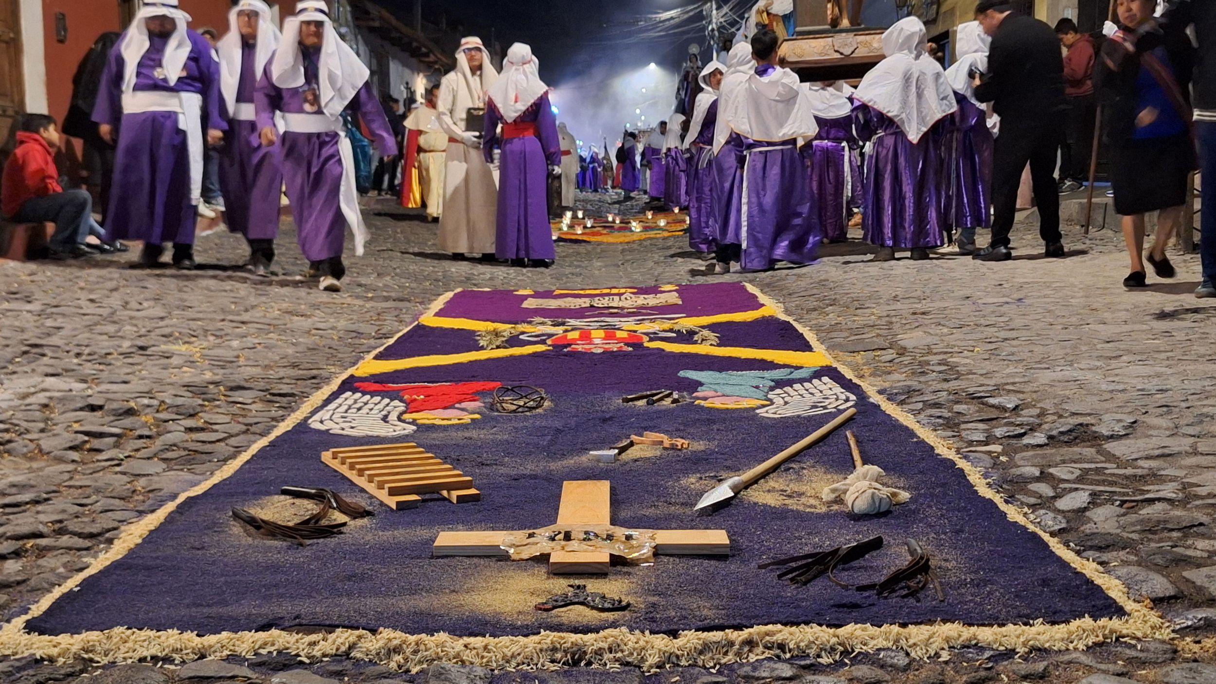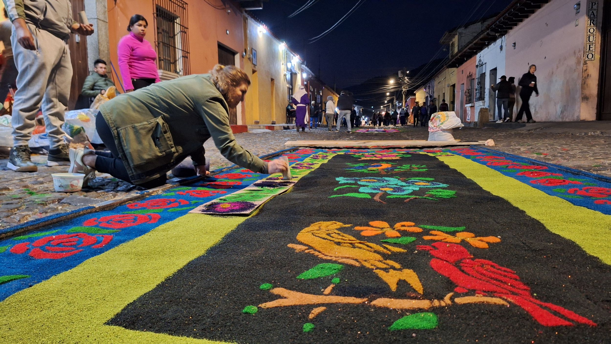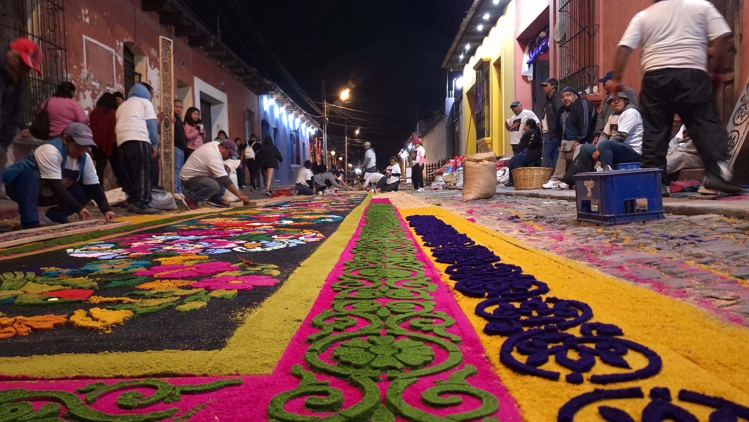 Již během čtvrteční noci a celého páteční rána se na ulicích shromaždují lidi a dokončují kobercovou výzdobu ulic. Když procházíte ulicemi města uvidíte, že u každého domu rodiny společně vytvářejí vlastní verzi alfombra - zdobného koberce. Základem je uhlazená vrstva písku, na které se pomocí šablon vytváření vzorce z barvených pilin, květin a borovicového jehličí.
