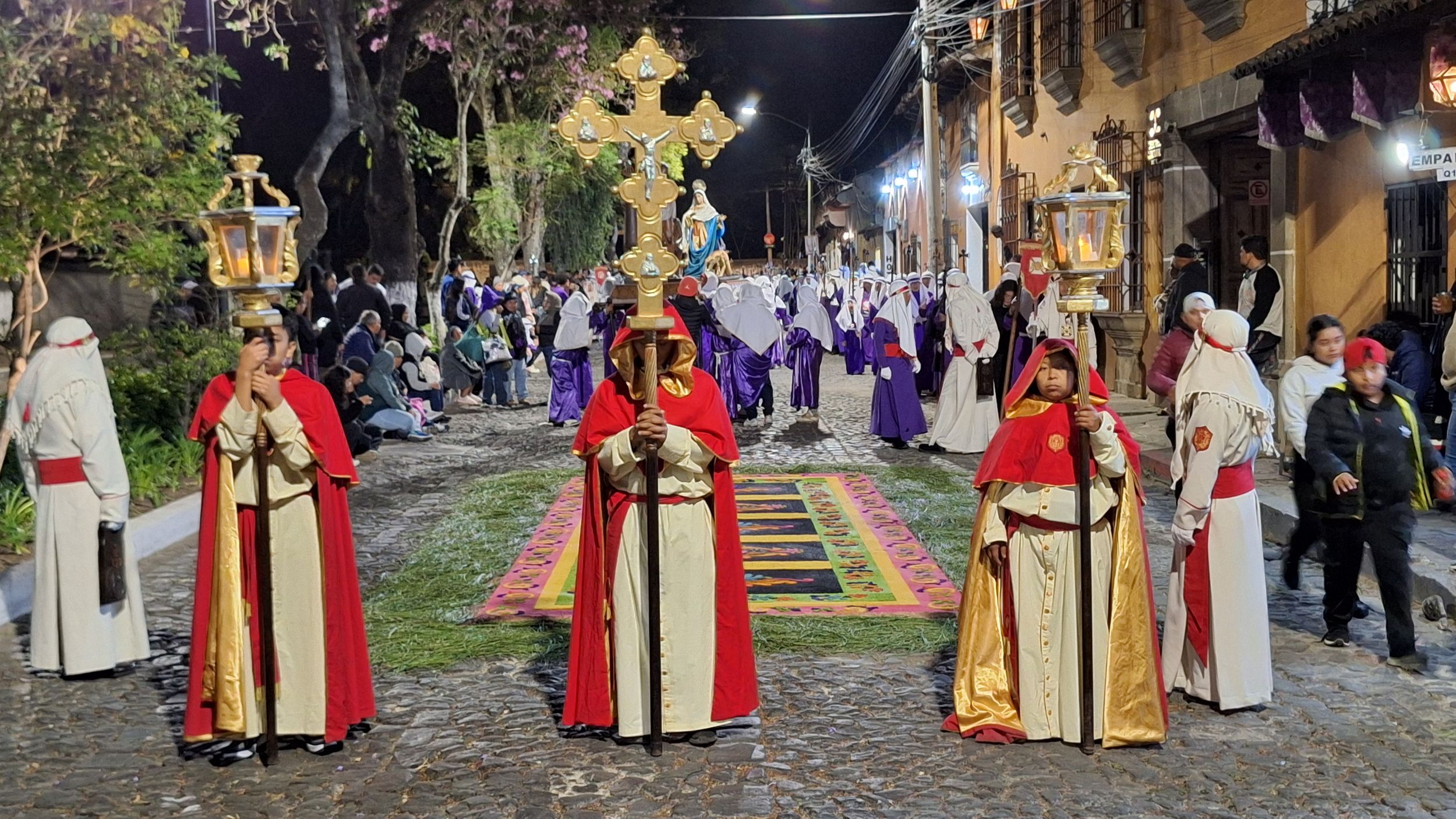 Procesí začínají na Květnou neděli, s obrazy Ježíše z Nazareta a Panny Marie Sedmibolestné. V čele procesí je nesen na ramenou věřících velký dřevěný podstavec na kterém je obvykle umístěna socha Ježíše Krista nebo Panny Marie. Nosiči jsou oblečeni obvykle do tradičních fialových oděvů. K nesení dřevěného podstavce s Kristem je nutné 50-100 osob a všichni se pohybují v pravidelném houpavém kroku v čele s osobou, která udává tempo a řídí celé procesí. Za nimi jde procesí místních lidí s kapelou, která vyhrává smuteční pochody. Všudypřítomná vůně kadidla jenom dokresluje autentickou atomosféru slavností.